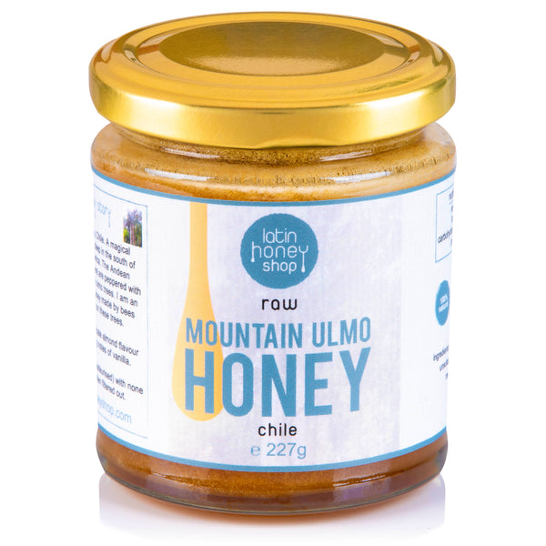 At least 84% of this honey comes exclusively from bees feeding on ulmo (Eucyphia cordifolia) flowers.